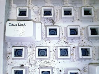 Mmm, tasty. I even found a couple of dead insects. Ace! Anyway, nice and clean now, and the keys feel much more responsive again too. Click my Germ Report to take your own!