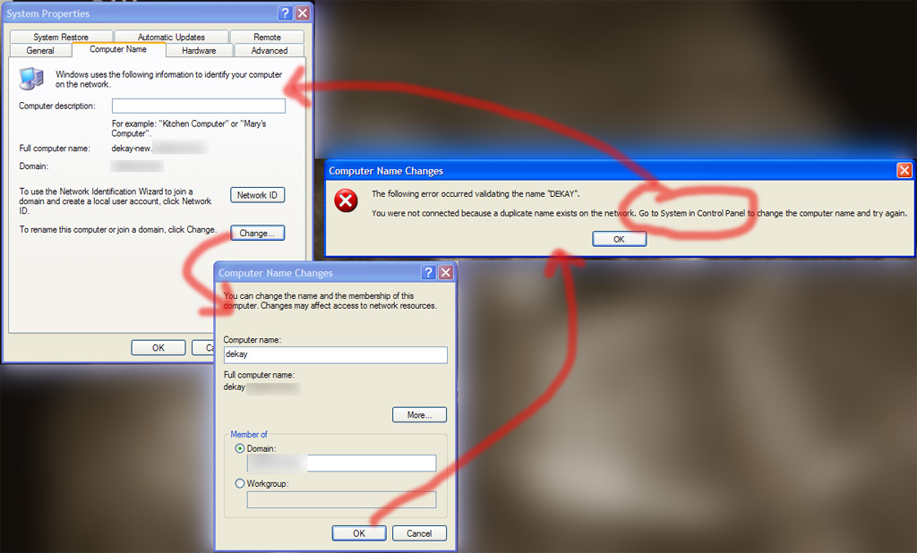 It seems that Windows found an error, and to fix it wants me to try renaming the computer (like I’m doing) using System, in the Control Panel. You know, like I’m doing.