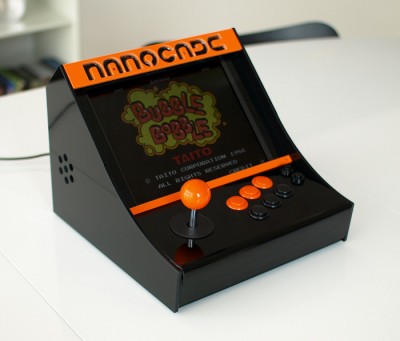 This guy here has made this fantastic mini arcade cabinet out of a netbook-sized screen and a mini-ITX board, although he says you could just stuff a 10″ netbook in there. And I want one. I mean, just LOOK!