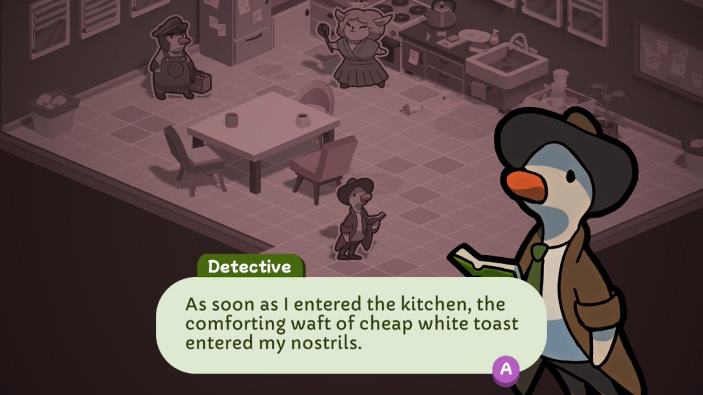 Desperate for work, you take on a job for an anonymous person who wants you to investigate a lunch theft from the staff kitchen in the offices of a bus company. By making deducktions (no, really) where you link characters and evidence to fill in gaps in sentences, based on the information you’ve found or gotten out of the workers. It soon becomes clear that there’s a bit more going on than someone nicking food from the fridge, when there’s evidence of smuggling and even a kidnapping.