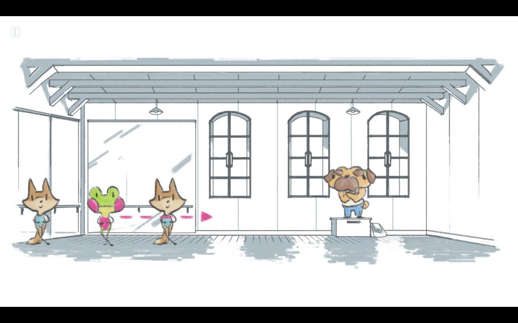 Un Pas Fragile is a short narrative game about a frog who wants to do ballet. As all frogs do, I expect. It plays out over a few days, where you leave your house, get the bus, go to ballet school, and do some ballet.