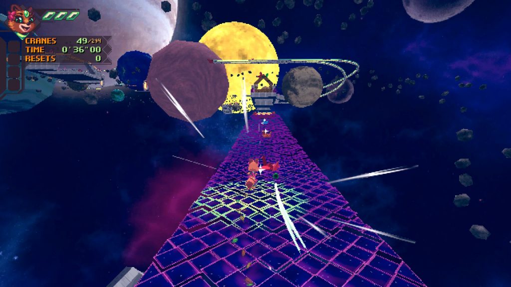 It isn’t a huge game, with only a handful of worlds with most only having two acts, but it is inventive, varied and fun. There’s bits like Sonic Adventure, and bits like Mario 64, and bits like Crash Bandicoot (only good), but it still manages to be its own thing. Nice music, new-retro 32bit console aesthetic graphics, and a draw distance the PS1 couldn’t even dream about.
