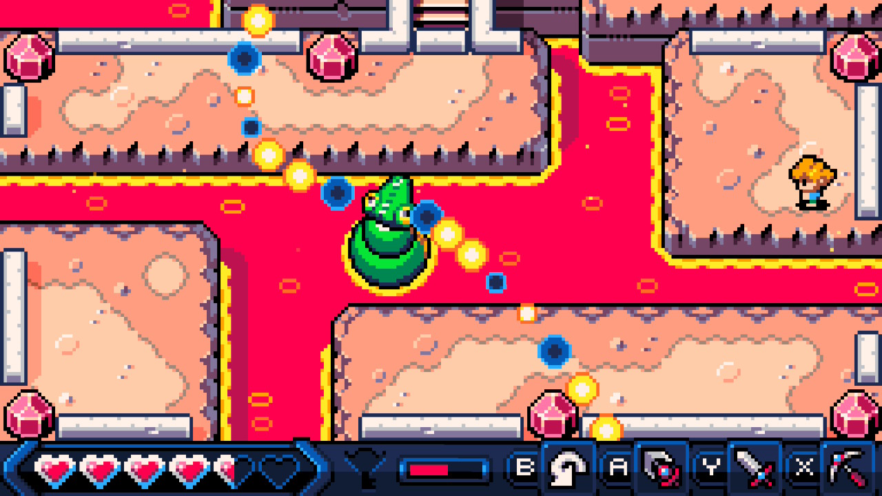 Yes, it does look a lot like a Game Boy Colour Zelda game. It feels a bit like one too, not least because you have a sword and a hookshot and there are block pushing puzzles just like in Link’s Awakening. Only it’s only an hour or two long and there are only really three short dungeons.